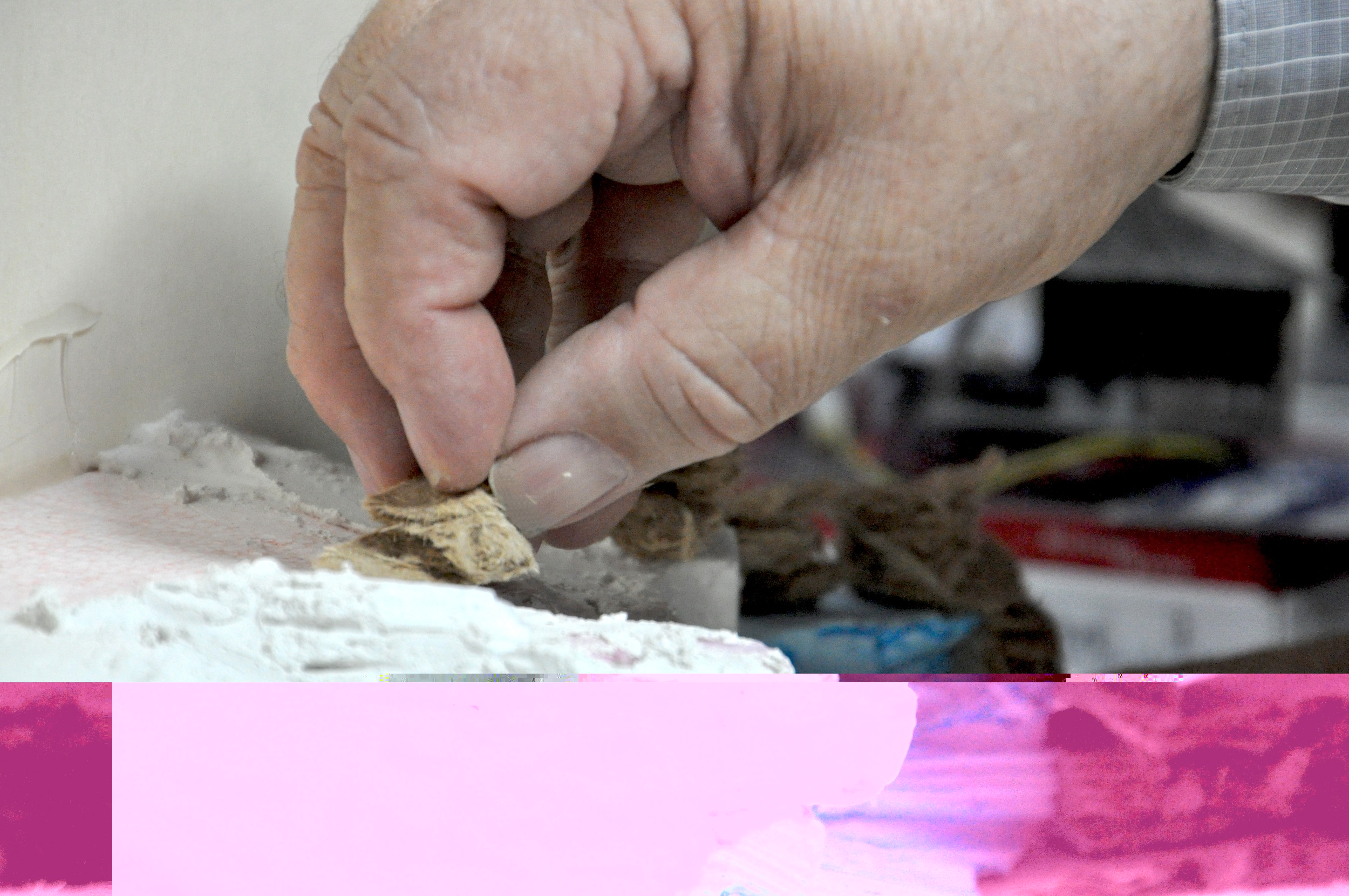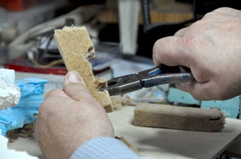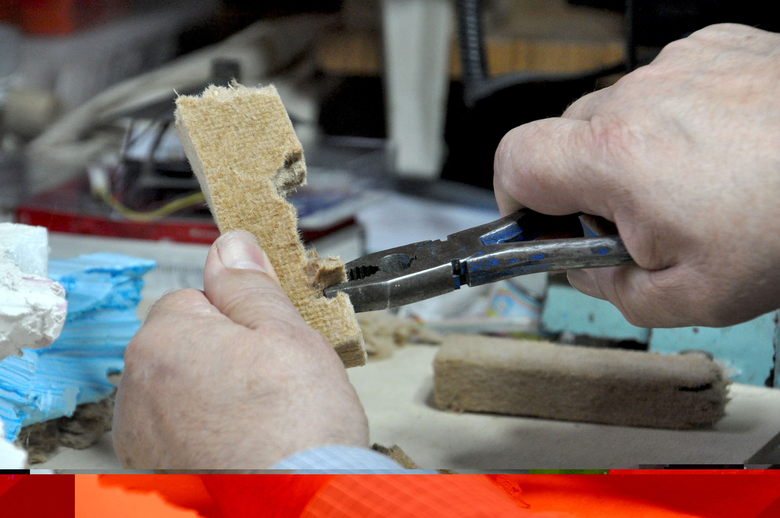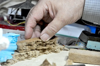 Aus den Dämmfaserstreifen reisse ich mit der Kombizange Teilstücke heraus, bis die gewünschte Struktur zu erkennen ist.