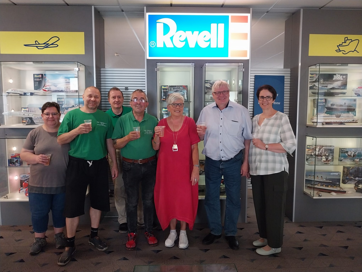 Mit jeder Menge Geschenken und einer Collage mit Bildern aus dem gemeinsamen Arbeitsleben haben die Mitarbeiter von Revell sie in den Ruhestand verabschiedet.