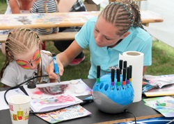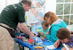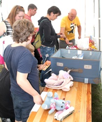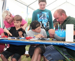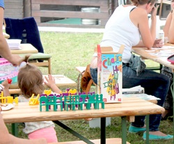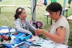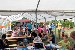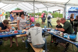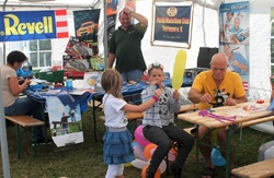 Und die Arbeit mit und für den Bastelnachwuchs, das ist unser Stichpunkt. Wir wurden mit unserer Bastelstrasse dazu eingeladen und wir haben dazu die Tische im großen Zelt aufgebaut.