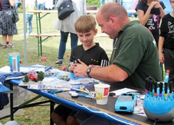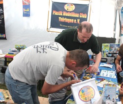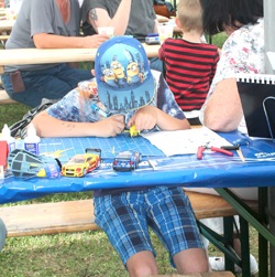 Unter unserer Anleitung haben die kleinen und größeren Modellbauer die Möglichkeit bekommen, sich mit Cuttermesser, Feile und Seitenschneider ihre Auto- oder Flugmodelle zu bauen. Diese konnten sie nach Fertigstellung mit nach Hause nehmen. Das war durch die großzügige Spende von 75€ vom Vorstand des Vereins an die Stiftung Deutsche Kinderkrebshilfe möglich gemacht worden. Insgesamt konnte ich für die DKKH 110€ überweisen! Vielen Dank dafür!