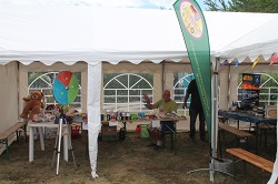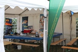 Wir wurden vom Vorstand des Gartenvereins eingeladen und am Samstag aufs herzlichste begrüßt. Im Festzelt haben wir, Christian und ich, unsere Bastelstrasse aufgebaut und gegen 14:00 Uhr ging das Familienfest in der Gartenanlage los.