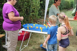 Beim Entenangeln konnten die Kinder die meisten Punkte angeln. Dies brauchten die Kinder, sie konnten sich einen Laufzettel geben lassen und auf die Punktejagd gehen. Dazu gab es noch einige Stationen, wie das Büchsenwerfen und drei Würfe mit der Schnur mit den Kugeln dran.