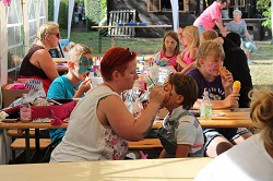 Für die Verpflegung war gesorgt, in den Vereinsräumen wurde Kaffee gekocht und Kuchen angeschnitten. Zu Essen gab es auch und später kam auch noch das Eis-Mobil.