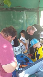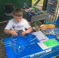 Direkt davor hatte ich meinen Pavillon aufgebaut. Ich habe wieder den Modellbau in den vielen Facetten zum Einstieg in das Hobby präsentiert.