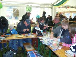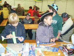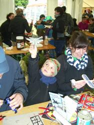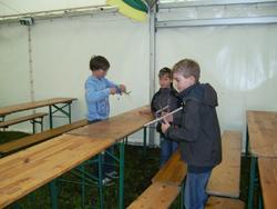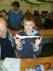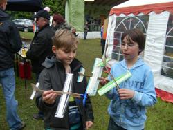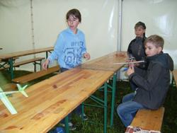 Doch nun zurück an unsere Bastelstraße. Die Balsaholz-Flieger, die uns von der Firma Revell zur Verfügung gestellt wurden, war ein Renner. Schnell zusammengebaut, konnte es dann gleich zum Probefliegen vor das Zelt gehen.
