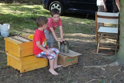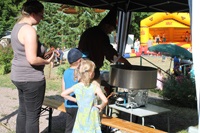 Dosenwerfen und das Bauen einer Kartoffelpyramide und Hufschmiedearbeiten unter Anleitung von einem echten Schmied waren weitere Highlights des Festes.