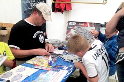 An unseren Tischen war die ganze Zeit was los. Draußen fing es derweilen an zu regnen. Das war für die Attraktionen vor dem Zelt sehr schade, blieben doch dadurch die Spielgeräte liegen. Aber im nächsten Jahr soll das Wetter besser werden. Für die DKKH haben wir erneut 85€ sammeln können. Dafür gilt unser Dank an die großen und kleinen Besucher des Kinderfestes. Knut Kern, PMC Thüringen e.V. |