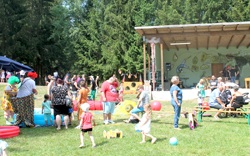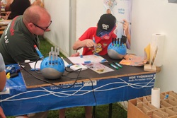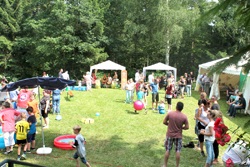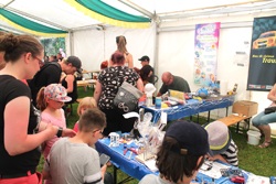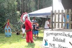 Der Andrang bei uns am Stand hat den kleinen Schmetterling nicht sonderlich gestört. Vielleicht wollte er einfach nur ein Tattoo haben. Zumindest diente sein Muster auf den Flügeln nachher als Malvorlage beim Airbrush. Die anderen Vereine aus dem Ort haben den Landfrauen natürlich auch gratuliert und sich mit Sport und Spiel für die Kinder präsentiert. Die Feuerwehr vom Amt-Wachsenburg, die Kirmesgesellschaft und viele Gäste aus Nah und Fern waren da und haben gratuliert.