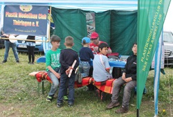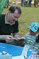 Wegen des großen Andrangs habe ich einen großen und einen kleinen Helfer vom MFC Crawinkel zur Seite bekommen. Nach einer kurzen Einweisung haben sie dann auch den Gästen der Flugshow den Bau der Segler erklärt. Ich war überrascht, dass wir knapp 100 Flieger an diesem Nachmittag verbaut haben. Gleichzeitig habe ich die Spendenbox für die Kinderkrebshilfe mit 120,00€ füllen lassen. Vielen Dank an alle Besucher aus Crawinkel und Umgebung.