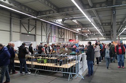 Der Akku neben der Feuerwehr zeigt, das diese Feuerwehr selber fahren kann. Der RC-Bereich mit all seinen unterschiedlichsten Themen hat in den beiden Messehallen einen sehr großen Raum zur Präsentation bekommen.
