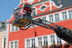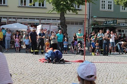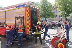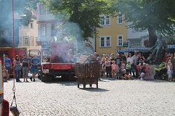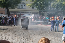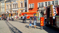 Die freiwillige Feuerwehr von Arnstadt präsentierte auf dem Marktplatz, direkt vor dem Arnstädter Rathaus ihre Technik und die dazu gehörige Einsatzbereitschaft.