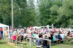 Von der Bühne auf der Festwiese wurden sie dann alle von Mitgliedern des Vereins recht herzlich begrüßt.