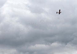 Gleichzeitig starteten und landeten die Modellflieger. Die Piloten an den Fernsteuerungen zeigten dabei ihr Können, denn am heutigen Sonntag war es sehr windig und somit garnicht so einfach die Flugzeuge in der Luft zu halten.
