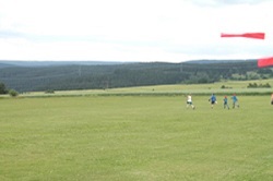 Für große Aufregung, zumindest bei den Kindern, sorgten dann auch in regelmäßigen Abständen ganz bestimmte Flugmodelle. Sie hatten nämlich Süßigkeiten an Bord, die dann so zu sagen auf Knopfdruck vom Himmel fielen und durch die jüngsten Besucher vom Flugfeld eingesammelt werden konnten.