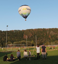 Zum Ende der Veranstaltung gab es noch eine sehr ungewöhnliche Aktion. Am Nachmittag wurde eine Ballonfahrt versteigert. Das alleine ist ja noch nichts besonderes. Die Ballonfahrt wurde allerdings noch am selben Abend gleich vom Fußballplatz aus gestartet. Also nur etwas für Kurzentschlossene.