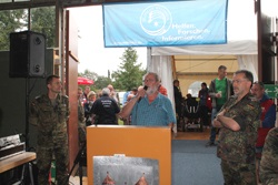 Zum Abschluß der Veranstaltung rief Oberstabsfeldwebel a.Res. Helmut Duntemann zum legendären Spendenmarathon auf.