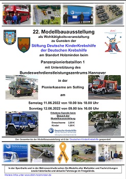 Nach zwei Jahren, aber etwas früher im Jahr als gewöhnlich, lud Oberstabsfeldwebel d.Res. Helmut Duntemann zur 22.Modellbauausstellung zu Gunsten der Stiftung Deutsche Kinderkrebshilfe nach Holzminden ein.