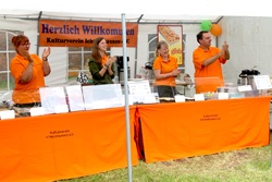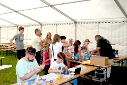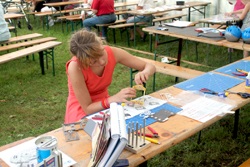 Im vergangenen Jahr haben wir ca. 13:00 Uhr mit unserer Bastelstrasse begonnen. Das war damals schon etwas spät. Also haben wir uns in diesem Jahr entschieden, schon um 12:00 Uhr da zu sein. Aber auch diesmal wurde unsere Ankunft schon sehnsüchtig erwartet. Kaum das wir unseren Tisch aufgebaut hatten, war der Andrang bei uns riesengroß.