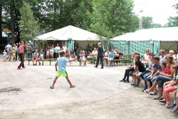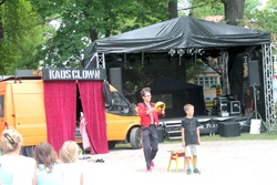 Da wurde gleich mal klargestellt, was Sache ist; "Friends for ever". Während dessen trieb vor dem Zelt der Kaos-Clown sein Unwesen, sehr zur Belustigung und dem Beifall der Mitglieder des Kulturvereins von Ichtershausen.