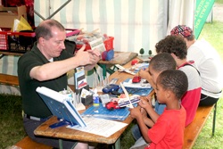Bei uns wurde derweilen weiter am Fallerhäuschen gebaut. Immer häufiger haben wir auch Kinder mit Immigrationshintergrund bei uns an der Bastelstrasse. Aber nach kurzer Unterweisung in den Modellbau klappt das Basteln dann auch ganz gut. Die Freude über das Geleistete und das das Flugzeug nachher auch tatsächlich flog, war auch hier, wie bei allen anderen Kindern, groß.