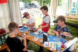 Bis zum späten Abend wurde noch gebaut und gebastelt. Vor dem Zelt waren schon alle nach Hause gegangen, während wir noch einen Feuerwehr-Pajero gebaut haben.