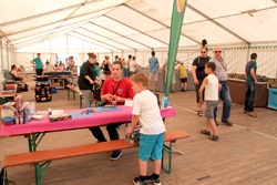 Danny Engelhardt hat mir verraten, dass er jetzt mal vom Panzer-Modellbau auf Baustellenfahrzeuge umsteigt. Schnell hat er an den Einsteigermodellen von Revell Interesse gefunden. Neu beim PMC Thüringen sind Rebecca, Michael und wie hier an unserer Bastelstrasse der Andreas aus Jena. Sie haben die Modellbausparte des Vereins vertreten.