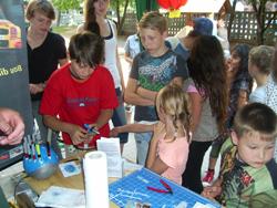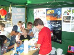 Vor einigen Tagen hatte ich eine Einladung zum Mieterfest der KoWo auf unserem Hinterhof in meinem Briefkasten. Sofort kam mir die Idee, bei diesem Fest mit den Kindern Balsaholzflieger zu bauen. Ich habe mein Zelt aufgebaut und los ging es.