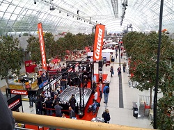 Gleich im Foyer der Messehallen konnte, frei nach dem Motto der Modellbaumesse gespielt werden. Auf der Carrera DIGITAL 124 konnten die neuen Flitzer ausprobiert werde. Also auf zur hobby, modell spiel nach Leipzig.