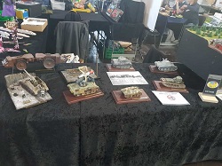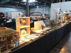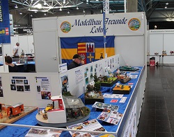 Wir vom PMC Thüringen haben unseren Stand wieder mit den Modellpferdefreunden Deutschland und dem Modellnetzwerk Franken aus Fürth geteilt. Das bedeutete für uns, dass wir zusammenrücken mussten und das es sehr eng war. Bruno Brütting war mit seinen Dioramen mit dabei und Giesbert Kords stellte u.a. sein "Weltmeister-Modellschiff" aus. Phillip Warstatt und Svenia Aschenbach zeigten ihre gesuperten Modelle und ich hatte mein Bergwerksmodul wieder mit.
