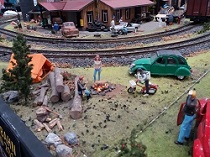 Bei Bruno Brütting und bei mir haben die Besucher fertige Dioramen bestaunen können. Zusätzlich dazu konnte, wer es wollte am Bergwerk kleine Szenarien per Knopfdruck gestartet werden. Das Interesse daran war an allen drei Ausstellungstagen riesengroß.