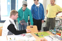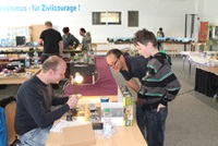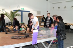 In der Aula des hiesigen Dr. Sulzberger Gymnasium fand das familiäre, schöne Ausstellungswochenende statt. Speziell für den Modellbaunachwuchs war diese Veranstaltung einen Besuch wert. Eine Bastelstrasse haben die Mitglieder des Modellbauclubs Werratal e.V. organisiert und durchgeführt, Daniel Hänel baute eine Autorennbahn auf, der Guido Linke seine LEGO-Bahn und am Kinderflohmarkt wurden die Besitzer von diversem Spielzeug getauscht.