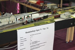 Zu sehen waren die transportablen Modellbahnanlagen vom Gastgeber und vom BW Arnstadt, vom MAC - Modell-Auto-Club Arnstadt wurde die RC-Sparte bedient. Eine sehr schöne Modulanlage in der Spurweite N hat Roy Bergauer mitgebracht: