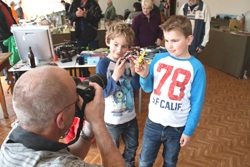 Drinnen ging es da eher ruhig zu. Ich selber habe wieder versucht, einige Kinder mit dem Modellbau zu begeistern. Auf jeden Fall hatten wir unseren Spaß daran. Sehr stolz wurde der gebaute Hubschrauber und das Auto für den Reporter der hiesigen Zeitung in die Kamera gehalten.