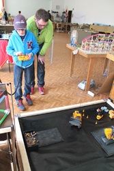 Bei mir konnten die jungen Gäste wieder selber die RC-Fernsteuerung in die Hand nehmen und die Baumaschinen oder den Gabelstabler, die es zum Einstieg in das Hobby bei der Firma Revell zu kaufen gibt, steuern.