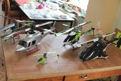 Hinterm Haus hat Michael mit seinen Modellen einiges zu tun, um den großen Kieshaufen abzutransportieren. Die Drohne, die den Gästen der Ausstellung ab und zu mal den Weg hinters Haus wies, und die Hubschrauber, die aber wegen des starken Windes nicht gestarten sind, zeigen die recht große Modellvielfalt des Vereins.