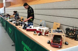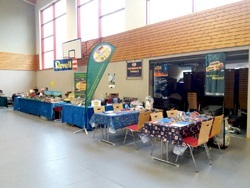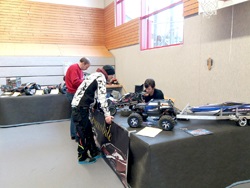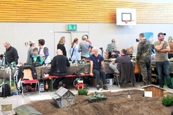 Noch bevor man in die Halle hinein kam, wurden die Besucher der Ausstellung von verschiedenen Vereinen und Institutionen begrüßt. Da stellten sich die Polizei und die Wasserwacht aus Bad Salzungen vor. Outdoor konnte man mit den RC-gesteuerten Autos fahren und wer es noch aktiver wollte, der konnte mit den Großen eine Runde mit dem Quad durchs Gelände drehen. Seit einiger Zeit findet jedes Jahr im Oktober bundesweit der Tag des Modellbaus statt. Dieser wird durch den DPMV organisiert und durch verschiedene Modellbauvereine durchgeführt. Der PMC Thüringen hat die "Modellbauinsel" als große Plattform genutzt und sehr vielen kleinen und großen Modellbauern unser Hobby Modellbau gezeigt. Ich hatte dafür in diesem Jahr durch Bruno Bütting vom Modellbaunetzwerk Franken tatkräftige Unterstützung.