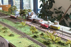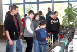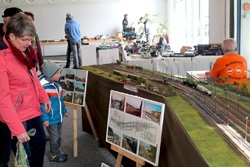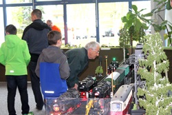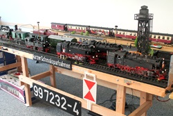 So wie im Vorjahr wurde drinnen die vereinseigenen TT - Modellbahnanlagen präsentiert. Die Bahnanlagen um den Bahnhof Leimbach dienen hier als Vorbild.
