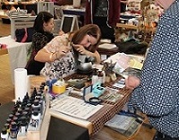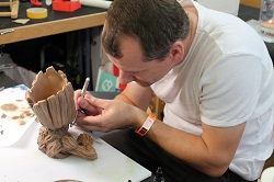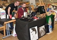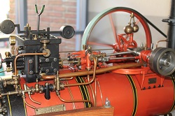Es ist schon erstaunlich, aus was alles die Energie gezogen werden kann, damit sich die Räder der Dampfmaschinen drehen. Hier ist eine kleine Maschine, die während der Pause auf einer Tasse Kaffee steht. Die Wärme des Kaffees betreibt dabei die Turbine, die das Schwungrad antreibt. Nach der Pause wurde eine Skulptur aus dem 3D-Drucker mit der Airbrush angemalt.