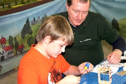 So haben sich Anja Brethauer, Lutz Bauer und ich, Knut Kern auf den Weg nach Fürth gemacht. Und dabei haben wir das Leistungsspektrum von 1 PS über 26 und mehr PS, bis hin zu den mehreren Tausend PS, über die ein Schiff verfügt, abgedeckt. Nebenher und umringt von den Modelleisenbahnfreunden aus Nürnberg habe ich noch die Kinderbetreuung übernommen.