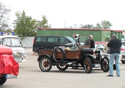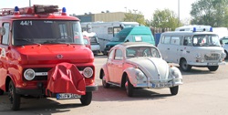 Draußen vor der Tür wurden die Gäste mit einer kleinen Oldtimerparade begrüßt. Neben dem ersten fahrfähigen und heute noch fahrtüchtigen Ford standen da Einsatzfahrzeuge aus Ost und West vergangener Jahre.