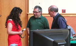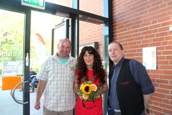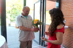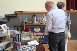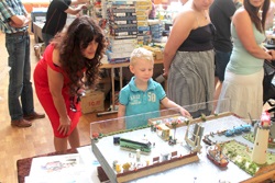 Zur Eröffnung haben wir uns Prominenz aus der regionalen Politik, die Landrätin Petra Enders eingeladen. Nach ein paar einleitenden Worten haben wir sie auf einen Rundgang durch unsere Ausstellung begleitet. Zum Abschluss hat es sich Christian nicht nehmen lassen, sich mit einem kleinen Blumenstrauß bei ihr zu bedanken. Diesmal erstmalig dabei waren Vater und Sohn Schadeck; unser neues Vereinsmitglied, Gerhardt Heilmann und was mich besonders gefreut hat, die Mitglieder des Modellbauclubs Werratal, Volker und Rudi mit ihrer Lego- bzw. vereinseigenen TT - Eisenbahnanlage. Das ist ein Nachbau vom Bahnhof in Leimbach. Ebenfalls gefreut habe ich mich über die Teilnahme zweier Leute aus dem "Duntemann-Team" aus Holzminden. Helmut selber hat familiär bedingt leider abgesagt. Umso mehr bedanke ich mich bei Thomas Deutsch und Claus Schrader, das sie da waren.