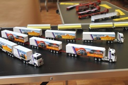 Frei Lüthi kommt aus der Schweiz. Dort ist er Spediteur mit seiner eigenen Fahrzeugflotte. Jetzt hat er sich für ein neues Firmenlogo, auch an den LKW`s entschieden. Und nun nutzt er jede freie Minute, um auch an seinen Modellen das alte Logo zu entfernen und die neuen Decals an zubringen.
