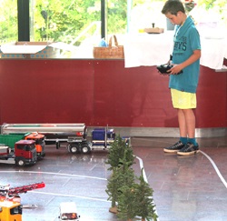 Im Foyer der Stadthalle hat der MAC Arnstadt sein Domizil gefunden. Neben der Möglichkeit, einen Kinderführerschein für das Fahren mit funkferngesteuerten Fahrzeugen zu machen, wurde hier eine Baustelle aufgebaut und an der Feuerwache ein Brand simuliert, bei dem dann auch die Feuerwehr zum Einsatz kam.