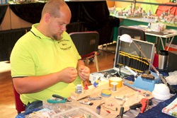 Modellbau der etwas anderen Art haben Lutz Pohl und Carsten Sänger gezeigt. Die Beiden zeigen live vor Ort, was so alles mit Papier und Schere möglich ist. Die Mittelalterstadt vom Lutz Pohl lag nicht umsonst in der Zuschauergunst ganz vorne. Nicht weit davon weg ist die noch junge Form des Modellbaus mit den Bauteilen, die mittels Laser geschnitten werden. Hierfür hat uns Gerhard Heilmann etwas mitgebracht. Wer dazu Interesse hat, kann ja mal auf seine Homepage: http://www.espe-laser-cut.de/ schauen.