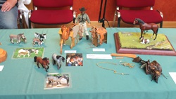 Auch zum ersten Mal war Anja Brethauer in Arnstadt mit dabei. Sie formt aus den gekauften Plastikmodellen lauter Unikate, die, neu bemalt mit Mohairziegenhaar ausgestattet werden. Die dazu passenden Kutschen werden vom Siegfried Jahnke gefertigt.