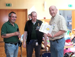 Am Sonntag gab es traditionell die goldene Puffbohne. Diese Auszeichnung gibt es nur beim PMC Thüringen. Hierbei wird die gute modellbauerische Arbeit und die beste Präsentation der Modelle während der Ausstellung prämiert. In diesem Jahr stimmte der Vorstand einstimmig für Udo Bauer aus Löbau. Im Zuschauerwettbewerb gewann diesmal Lutz Pohl. Bei diesem Wettbewerb kann jeder Aussteller mit seinen Modellen teilnehmen und der Besucher stimmt mit seiner Eintrittskarte über das schönste Modell ab. Lutz mit seinem Kartonmodell einer Mittelalterstadt lag in diesem Jahr mit großem Abstand vorn.