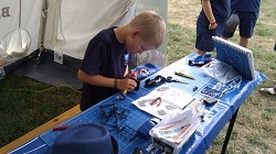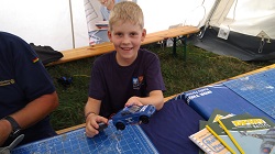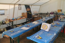 Am Sonntag nach einem reichhaltigen Frühstück haben wir unser Zelt bezogen und alles eingerichtet. Mitten in diese Arbeiten platzte dann schon der erste Modellbauer rein. Wobei Bruno das bereits am Abend vorher ausgemacht hat. Der Vati des Jungen ist Kamerad beim BR500 des THW, also dem Verband, der für den Aufbau des Zeltlagers verantwortlich ist. Das BR500 war allerdings schon 14 Tage vorher in Rudolstadt und jetzt, nachdem alles aufgebaut war, konnten die Männer und Frauen auch mal frei machen. Deshalb sind die beiden am Montag früh nach Hause gefahren, allerdings ohne das Modell des THW-Pajeros gebaut zu haben. Deshalb gab es die Einladung vom Bruno zum Modellbau am Sonntag, also außerhalb der vereinbarten Zeiten.