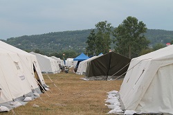 Die Zelte des BR500 und der Counter, das Bürgermeisteramt der Zeltstadt, wo alles Wichtige zusammen lief.