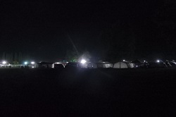 So, in der Zeltstadt ist es dunkel geworden; "Bis morgen!" weiter zum "ersten" Arbeitstag für uns ==>