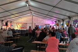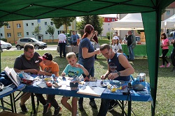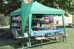 Wir haben unseren grünen Pavillon aufgebaut und schön dekoriert. Noch vor der Eröffnung des Mieterfests waren die ersten Modellbauer da.